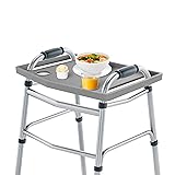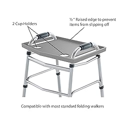 TRAY FOR WALKER WITH CUP HOLDER - Featuring two cup holders to securely hold your beverages and a 0.5-inch raised edge to prevent objects from slipping off, this sturdy and durable tray for walkers is an essential equipment accessory for everyday life. MULTIFUNCTIONAL - This tray for a walker is a useful accessory that turns your existing walker into a handy table for eating your dinner, carrying items from room to room, reading a book, crafting, knitting, or doing a crossword. WALKER TRAYS FOR FOLDING WALKERS - This practical tray table for walkers is compatible with the majority of standard folding walkers and is a wonderful accessory or gift for anybody that relies on their walker for mobility, turning it into a useful table. EASY TO USE - These walker trays for seniors with coffee cup holder are easy to use and require no assembly. Simply slide the tray down over the handles of your walker and it's ready to use as a table or as a tray for carrying things from room to room. PRODUCT DETAILS - Materials: High-Impact Polystyrene Plastic. Dimensions: (L) 21" x (W) 16" x (H) 1"; Handle Slots: (L) 11.75" x (W) 2"; Cup Holders: (L) 2.75"; Distance Between Cup Holders: 8.5". Fits Most Standard Walkers. Color: Gray.