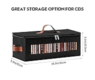 【Clear Window & Protective Zipper Lid】Designed with a transparent front window and a fully enclosed zipper lid, this CD organizer box keeps your collection clean and protected from dust, pet hair, and accidental splashes. Instantly view what’s inside without opening the box—perfect for your large CD collections. 【4-Pack Large Capacity – Holds 150+ CDs】Each CD storage box fits 38–40 standard jewel cases, accommodating over 150 CDs in total (capacity may vary depending on case thickness). An excellent solution for storing CDs, DVDs, Blu-rays, and more—ideal for media rooms, home theaters, and office spaces. 【Quick Assembly & Foldable Design】Set up in just one minute! This CD storage rack feature a simple structure for effortless installation. When not in use, they fold flat to save space—perfect for small apartments, dorms, or compact media storage. 【Durable Fabric & Sturdy Construction】Made from high-quality fabric paired with reinforced support boards, this CD display case is built for long-term use. The compact 42 × 21 × 20.5 cm / 16.5 × 8.3 × 8 in size maximizes storage efficiency while keeping your items neat and secure. 【Multi-Purpose Home Storage】More than just a CD case storage—use these versatile boxes for towels, toys, yarn, craft supplies, office items, and more. A practical all-in-one organizer that keeps your home tidy in any room: bedroom, closet, living room, or studio.
