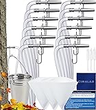 【Complete Maple Syrup Tapping Kit】This maple tree tapping kit includes 12 stainless steel maple syrup taps (spiles), 12 heavy duty hooks for hanging collection buckets, 12 maple syrup tubes, 3 maple syrup filters, and clear instructions to guide you through the process. Whether you're new to syrup making or an expert, this kit has everything you need for easy sap collection. 【Premium Stainless Steel Maple Syrup Taps-Built to Outperform Plastic】CIMALB maple tree taps are made from food-grade stainless steel for superior strength and corrosion resistance. The rigid metal construction retains its shape season after season, delivering stable fit, consistent sap flow, and long-lasting durability. 【Tree-Friendly Design for Reliable Sap Collection】Carefully designed stainless steel spiles for maple syrup insert easily and minimize tree damage, with a heavy-duty hook for hanging maple syrup buckets. The maple syrup tube reduces sunlight exposure and maintains a good seal to ensure smooth maple syrup flow, while the cleaning brush keeps maple syrup taps ready for next season. 【Reusable & Food Grade Materials】 CIMALAB food grade maple syrup tubes are BPA-free, ensuring the sap remains safe and free from harmful chemicals. These tubes are specifically designed to withstand the rigors of outdoor weather conditions while keeping the sap fresh and safe during the collection process. They are reusable, allowing you to use them season after season without the need for constant replacement. 【Efficient Sap Flow with Simple, Proven Installation】The maple tapping kit is easy to install. Just use a drill to drill a hole in the tree, embed the tap into the tree, and connect the tube to the end of the tap to complete the installation. Whether you are a beginner or a professional, you can easily collect sap. The maple syrup tubes ensure smooth sap flow, minimize sunlight exposure, and keep sap fresh until collection. 【What You Get】12x stainless steel maple syrup taps, 12x hooks, 12x maple syrup tubes, 3x filters, 3x cleaning brushes, 1x microfiber cleaning cloth and instructions as well as our 12-month worry-free warranty and warm customer service! (Whether it is a gift for experienced syrup makers or beginners, this kit is a great gift for maple syrup lovers!)