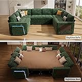 - Vipbear 8 Seat U Shaped Modular Sectional Sleeper Sofa with Pull Out Bed/Reclining Backrest/USB Ports/Table/LED Light/Storage Seat, Sectional Sleeper Couch, Tool-Free Assembly, Chenille Green