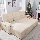 KCGKCG Sleeper Sofa, Sofa Bed with Pullout Bed, 2 in 1 Sleeper Sofa Couch with Reversible Storage Chaise, Charging Station, Sectional Couch for Living Room, Apartment, Bed Room (Cream Beige)