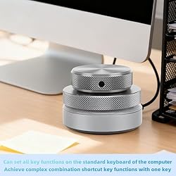 - 1. Flexible Connection: This volume control knob supports Bluetooth, 2.4G, and USB C wired connection, with Type C interface, plug and play, without the need for driver. 2. Shortcut Key Function: This knob can set all the key functions on the computer standard keyboard, achieving complex combination shortcut key functions with one key, comes with storage. 3. Simple Operation: You can connect multiple controllers without conflict, compact and convenient, easy to carry, equipped with RGB light to enhance ambiance. 4. Multi Functions: The knob supports customize settings one key input, short video browsing, like, adjusting screen brightness, web page switching, electronic book page flipping, and more functions. 5. 360 Degree Rotation: The rotation shaft supports 360° infinite rotation, suitable for long term use. Built in 400mah battery, can be used anytime, anywhere. Spec: Item Type: Volume Control Knob Material: ABS, Aluminum Alloy Three Modes: 2.4G(2.4G receiver needs to be purchased separately), BT, USB C wired Features: Custom settings one key input, flip up and down on mobile and tablet for short video browsing, like, adjust screen brightness (laptop) webpage switching, video editing software control, electronic book page flipping, car control computer function, music player skip to the previous or next song, volume adjustment, pause/play, mute, and more Support: Support for , support for OS X, support for Android, support for HarmonyOS, support for IOS system Battery: 400mah Li Battery x 1 (built in) Size: Diameter: Approx. 55mm / 2.17in Height: Approx. 40mm / 1.57in Color: Gray How to Use: Use according to the electronic manual. Package List: 1 x Volume Control Knob 1 x USB C Data Cable NoteThe product does not include a 2.4G receiver and needs to be purchased separately.