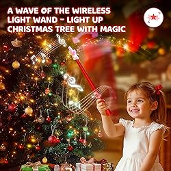 Notice: Hold and press the magic wand button 3 seconds to turn on/off the music effect! Magical Playtime Adventure: Ignite your child's imagination with our magic Christmas light wand kit! This enchanting set allows kids to control Christmas tree string lights effects with a simple wave of their wand or a press of the button, turning ordinary playtime into a magical adventure. Perfect for sparking creativity and bringing their favorite stories to life! Musical Surprises Await: Watch as your child’s eyes light up with joy! This wireless remote control outlet for Christmas tree lights includes fun music surprises that can be activated by the magic wand. With a cheerful melody, each wave brings a new delight, encouraging active play and endless fun for little ones! Notice: Hold and press the magic wand button 3 seconds to turn on/off the music effect. lnstallation is Effortless: Simply insert the receiver into the desired wall outlet, then connect the string lights to the receiver. This remote light switch with Christmas tree wand it's a plug-and-play setup with no further action required. Certified and Secure Assured: Experience unparalleled safety and reliability with our premium magic wand christmas tree light set! lncluding one enchanting magic light wand remote control (powered by 2 AA batteries, sold separately) and a UL-tested, IP44 waterproof A/C outlet wall receiver with a 3-prong design. Perfectly suited for both indoor and outdoor adventures, ensuring a worry-free lighting experience. Perfect Christmas Gift for Kids: Searching for the ideal gift? Look no further! The remote wand light up switch kit with music surprise is perfect for birthdays, holidays, Christmas, Xmas or just because. It encourages imaginative play, and brings music and magic into any child’s world.
