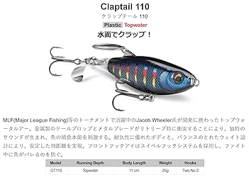 Rapala ClapTail 114: Body Length: 4-3/8" ; Running Depth: Topwater ; Weight: 7/8 oz.; Color: Matte Shad Topwater Commotion: Clacking tail creates surface noise and splash to trigger explosive bass strikes Easy Walk Retrieve: Designed for steady retrieve and stop and go action around grass docks and cover Durable Hardware: Strong hooks and tough body built for repeated use and hard hitting fish Rapala: Made by fishermen for fishermen, we understand what you need