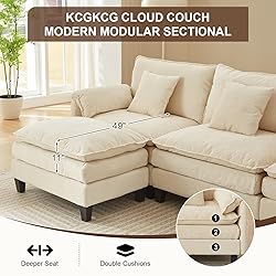 - 108" Modular Sectional Sofa, Comfy Cloud Couch with Movable Ottoman Deep Seat Chenille L Shaped Modular Sofa, Sectional Couches for Living Room, Bedroom and Apartment