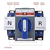- Features: *Made of materials, *The sudden power cuts have caused a lot of distress. This double power automatic change-over switch will help you to solve this problem. *When the common power supply is cut off, the backup power supply is supplied, and when the common power supply comes in, it is restored to the common power supply. *The switching time is only 2 seconds. *The automatic switchover saves you more trouble to maintain a continuous power supply. *Wiring Terminal: It adopts the mouth-type terminal to effectively prevent accidental touching, and it is safer and faster to use. In addition, it is connected to the signal light terminal, so it is also suitable for complete sets of distribution boxes. Application:It can be applied to various scenarios such as elevators, surveillance, fire fighting, office buildings, . It is suitable for household electricity and various large places such as ports and terminals, banks and mechanical plants. Specification Color: Blue Material: Resin+ Steel Conversion Mode: Self-cast Display Function: Indicator Light Display Installation Dimension: 128mm*118mm Hole: M6 Circuit Type: 2-way Mounting Type: Wall Mount Rated Voltage: AC400V Working Voltage: AC220V, 50/60HZ Rated Current: 63A Conversion Time:≤2S Way: Auto/Manual Package Contents: x Double Power Automatic Change-over Switch