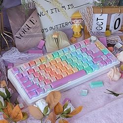 【Unique Side Printed Keycaps】:Special side-printed design is used to perfect the pattern of the keycaps and allow the light from the keyboard to shine through the fonts 【Oil Resistant PBT Keycaps】: Side-lit keycaps are made of high-quality PBT material with an oil-resistant coating for greater resistance to fingerprints, sweat and oil. Dye sublimation technology allows the keycaps to be used for a long time without fading. (Note: LEDs work best when facing south) 【Keycap Set】:This keycap set includes 131 keys with a 6.25u spacebar and 1 keycap puller, fit most 60%/65%/75%/80%/96%/100% (61/64/68/75/84/87/96/104/108) US layout mechanical keyboard 【Cherry Profile Keycaps】:The keycap designed with the cherry profile,the keycap looks very beautiful, and increases the contact surface between the keycap and the fingers, you won't feel fatigued when using it for long periods of time during work or gaming 【Keycaps Tip】: If you have any questions about the product you can contact us at any time, we will solve the problem for you (Note: only keycaps, not keyboard)
