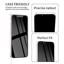 Dark Color: Make your phone stand out with dark color. The stronger light indoor or outdoor, the brighter private screen protector color will present. 28° Privacy Screen: Use the most appropriate color depth for the 28° anti-peep coating, it is only visible to persons directly in front of screen, while satisfying privacy and visual comfort. Protecting your privacy and sensitive information well in malls, buses, metro, restaurant or other public area. Anti Blue Light Protection: The protective privacy glass is combined with EVA multi-coating technology and filter technology, it can filter out 95% blue light effectively, but still allows non-harmful light through the screen, prevent sleep disorders and eye strain. 9H Hardness: The screen saver is made from 9H multiple tempered glass layer which provide shatterproof protection from high impact drop and preventing your iphone from any scratch. The screen protector will self-expel air bubble when automatically bonding with the screen. Package Include: Inside the package, it comes with 3 x iPhone 14ProMax privacy screen protector glass.
