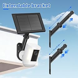 【All-in-One 】 This versatile Ring solar panel mount integrates your camera and solar panel into a single, space-saving setup. It securely installs on any flat surface using one set of holes. Perfectly compatible with Ring Stick Up Cam/Pro, Spotlight Cam/Plus/Pro, and all-generation Ring Solar Panels (1st Gen 2.4W, 2nd Gen 4W, 1.9W Small). Note:Cameras and solar panels not included. 【Universal Compatibility】 Featuring a standard 1/4"-20 screw thread, this Ring camera solar panel mount works seamlessly with major security brands including Ring, Blink, Arlo, Eufy, Wyze, Nest, and Baby Monitor. The versatile design ensures broad compatibility across most outdoor camera and solar panel systems using the industry-standard mounting interface. 【Full-Range Positioning System】 Engineered for optimal performance, this Ring solar panel mounting bracket provides 360° camera rotation and 180° solar panel tilt adjustment. The extendable arm (5.9-8.7in/15-22cm) enables precise positioning to capture the perfect viewing angle while maximizing solar exposure throughout the day. 【Weather-Resistant Durability】 Constructed from premium metal components and weather-resistant ABS materials, this mount features anti-oxidation properties that prevent rusting. Built to withstand extreme temperatures from -30°C to 70°C (-22°F to 158°F), it ensures reliable performance in diverse outdoor conditions year-round. 【Easy Installation】 Get set up in minutes with the included hardware. The tool-free design allows quick positioning of your camera and solar panel. All necessary screws and anchors are provided for immediate use. Contact us with any questions about installation or compatibility.
