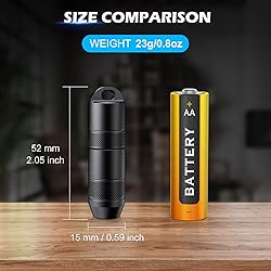 Quick Release & Magnetic Base Design: Easily pull to turn on and snap back to turn off; securely attaches to keys or bags, with a magnetic base for hands-free use on metal surfaces, perfect for EDC convenience.Powerful neodymium magnet securely holds the light body to the base – resists accidental detachment even when jostled.[2 Pack] Bright 100 Lumens Output: Delivers up to 100 lumens with a beam reaching 25 meters – perfect for emergencies, daily tasks, walking the dog, or quick checks in dark spaces.[2 Pack] Fast USB-C Rechargeable: Fully charges in just 60 minutes via included USB-C cable, with a clear red indicator during charging, off when complete.[2 Pack] Durable And Waterproof: IPX6-rated and drop-resistant up to 1.5 meters, crafted from lightweight aluminum for long-lasting reliability.[2 Pack] Ultra-Compact & Lightweight: Only 23g and 52mm long × 15mm diameter – slips easily onto keys, into pockets, or bags without adding bulk. True EDC convenience without compromise.[2 Pack]