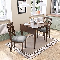 【 1-Piece Dinning Table】The 1-Piece farmhouse dining room set include 1* extendable dining table with drop leaf, which will be enough for 6 people. 【High Quality】Crafted from sturdy rubberwood legs and premium MDF veneer birch, this dining table set offers durability, perfect for enhancing any home decor. With three color options, it offers diverse atmospheres to suit individual tastes! 【Extendable Dining Table】The dining table comes with two 8-inch leaves that can extend from 27.9” x 29.5” to 45.67” x 29.5” accommodating more guests as needed. When not in use, the foldable leaves and chairs can be stored compactly under the table, maximizing space efficiency. 【Versatile Usage】This rectangular table measures 46.5''W x 29.9''L x 30''H, with a weight capacity of 250 lbs. It serves multiple purposes, including as a dining table and coffee table, among others. Suitable for both dining rooms and living rooms, it comfortably seats 4 individuals and is an excellent option for small apartments. 【Easy to assemble】Come with clear instructions and required tools,shipp in two packages, it is easy to put together and take down and and we provide clear instructions of our dining table set for your reference.