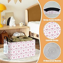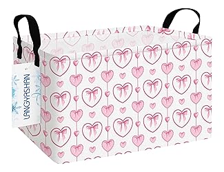 LANGYASHAN Rectangular Storage Bin Collapse Canvas Fabric Cartoon Storage Basket with Handles for Organizing Home Kitchen Boys and Girls Toys Office Closet Shelf Baskets (Rec Pearl Heart)