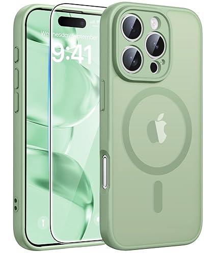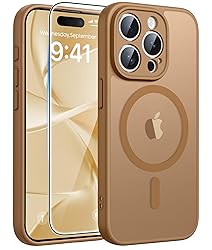 Strong Magnetic Charging: Fit for Magnetic chargers and other Wireless chargers. This iPhone 15 Pro Max Case has built-in 38 super N52 magnets. Its magnetic attraction reaches 2400 gf, which is almost 7X stronger than ordinary, therefore it won't fall off no matter how it shakes when you are charging. Aligns perfectly with wireless power bank, wallets, car mounts and wireless charging stand Camera Protection: Unique meticulously designed integrated lens cover protection. It prevents your iPhone 15 Pro Max camera from any dust, shatter, or scratch. And the same camera cover color match with phone case, which looks more uniform Tempered Glass Screen Protector: iPhone 15 Pro Max Phone case with 1X screen protector, it can preserves the original touch sensitivity and HD clarity while providing exceptional protection against scratches and drops 14FT Military Grade Drop Protection: Our Phone Case iPhone 15 Pro Max backplane is made with rigid polycarbonate and flexible shockproof TPU bumpers around the edge and features 4 built-in corner Airbags to absorb impact, which can prevent your Phone from accidental drops, bumps, and scratches Matte Translucent Back: The Case for iPhone 15 Pro Max uses high quality matte TPU and PC translucent material, refined and elegant beauty without covering the iPhone logo. The frosted surface provides a comfortable hand feel, and the Nano antioxidant layer effectively resists stains, sweat and scratches