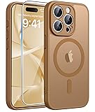FNTCASE for iPhone 15 Pro Max Case: [Compatible with Magsafe] Translucent Matte Cases with [Full Camera Protection] [Screen Protector] Military Grade Shockproof Protective Phone Cover - Brown