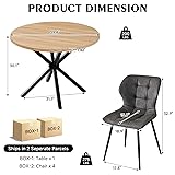 【Complete 5-Piece Dining Set】One 39.4" round table and four matching chairs, designed with clean lines and quiet functionality — perfect for your apartment dining area, kitchen nook, compact living room, or even a stylish home office. No fuss, just ready-to-use harmony. 【Round Table with Crossed Steel Base】39.4" diameter × 30.1" height tabletop, 1.4" thick engineered wood with realistic woodgrain or stone-pattern vinyl finish, assembled from two panels and supported by a minimalist crossed steel frame — built for stability, ideal for daily meals. 【Faux Leather Upholstered Chairs】18.9" W × 15.8" D × 32.9" H chairs, fully upholstered in soft faux leather over thicken high-density foam padding, supported by slender tapered steel legs — comfort shaped with intention, not excess. 【Space-Saving for Any Home】Whether you're setting up a casual breakfast nook, a compact home dining area, or even a trendy café, this set brings both function and style to the table. Ideal for restaurants, coffee shops, lounges, offices, or living rooms — it’s a versatile choice for just about any environment. 【Clear Assembly, Considered Handling】Arrives in two thoughtfully packed boxes with an illustrated step-by-step guide and labeled hardware for straightforward setup — once assembled, always lift the table by its steel base legs, not the tabletop edge, to preserve its integrity.