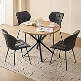 Lecafur HL 39" Round Dining Table Set for 4, Mid Century Kitchen Table with 4 Synthetic Leather Upholstered Dining Chairs for Dining Living Room Apartment Space Saving