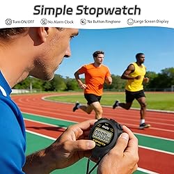 - The FCXJTU digital basic stopwatch is a pure simple stopwatch, special for coaches, athletes, runners, referee, adults, kids. The stopwatch suits for various sports such as running, swimming and rugby game etc. It’s the family’s favorite single split pure simple stopwatch. Color: Black&Blue Pure Simple Stopwatch While most stopwatches on the market contain extras, like time, date, alarm; our customers told us that they never use them and it makes the stopwatch more complicated to use and set up. So, we listened, and have removed them completely. Additionally, we have increased the display size and added an on/off switch and water-resistant, just what our customers asked for. High Quality: The FCXJTU basic stopwatch has a good design, and you will feel comfortable and compact in your hands. It comes with 47in lanyard (neck strap), 1/100th second accuracy, large display, water, dust and shock resistant, light weight, easy to use, perfect for kids training like swimming running rugby basketball football and etc. Silent Stopwatch FCXJTU digital stopwatch timer is absolutely silent, there is no noise when you press any button or counting. ON/OFF Function to Save Battery The basic stop watch has on/off function with one LR44 battery, and it is low energy consumption, durable, 1/100th second accuracy, large display, water, dust and shock resistant, light weight and easy to use. What's in The Package: 2 X FCXJTU Digital Basic Stopwatch 1 X User Manual WARRANTY: The screen protector is attached to the stopwatch, and you can tear off the screen protector according to your need.