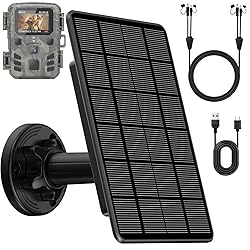 【Best Assistant for Trail Camera Outdoor Charging】This trail camera solar panel has super high solar energy conversion rate, combined with the 5000mAh rechargeable lithium battery built into this trail camera solar panel, it can bring uninterrupted power to your hunting camera all year round, so that your trail camera can work for a long time without power. 【High Efficiency Solar Conversion Rate】This trail camera solar panel is made of high purity monocrystalline silicon solar panels, with a 200% increase in photovoltaic conversion efficiency, dramatically outperforming ordinary trail camera solar panels. With the high-capacity energy storage battery, the power supply can still be sustained in cloudy and rainy weather, ensuring the stable operation of your trail camera all day long. From now on, whether the sun is blazing or it's raining, your device will be on standby for a long time, so you won't miss any critical moments. 【High Compatibility Aadptation】The perfect solar power system built specifically for outdoor hunting camera equipment, perfectly matches mainstream trail camera interfaces (DC5.5*2.1/3.5*1.35), intelligently recognizes the output voltage (12V/1A or 6V/1.5A), covering more than 95% of hunting camera models. Modular plug design, 3 seconds quick docking, let your field surveillance equipment say goodbye to power supply anxiety. (We recommend checking the interface specifications of your equipment before purchase to ensure seamless adaptation) 【IP66 Waterproof & Dustproof Protection, Fearless of Extreme Environments】This trail camera solar panel designed for harsh outdoor environments, with IP66 fully sealed protection architecture, through the torrential rain, sand and dust attack, salt spray corrosion and other 9 extreme environmental tests. Whether it's tropical rainstorm, desert sand or high cold snow, it can provide all-weather stable power supply for your hunting camera equipment. 【360°Flexible Adjustable Mount】This trail camera solar panel is equipped with a multi-dimensional universal adjustable mount, which can realize 90° elevation adjustment and 360° horizontal rotation to capture every ray of sunlight. Whether it's a dense jungle, rugged mountains, or a building sheltered environment, you can get the optimal light energy conversion efficiency through precise angle adjustment. 【What you'll get】Trail Camera Solar Panel x 1, Conversion Cables x 2, 360° Adjustable Wall Mount Bracket x 1, Screw Bag x 1, User Manual x 1 (Professional customer service will be available at all times to solve any problems for you and provide quality support)