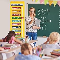Task Management Tool -- Featuring 31 task cards and a yellow pocket chart, this visual daily schedule tool supports clear organization of time blocks, helping students manage and track their school activities effectively Dynamic Planning System -- Incorporates an interactive card framework with ready-to-use editable options, colorful directional arrows for seamless transitions, and is tailored for math morning meetings, enabling effortless daily updates Organized Organization -- Designed to promote structured learning, this pocket chart uses a spacious layout and clear card visibility to help reduce information clutter and modernize daily planning Adjustable Activity Planner -- Support dynamic workflows with cards designed to adjust according to progress, clearly indicating active times and simplifying transitions while making it easy to modify schedules anytime during use Modernizes Routine Management -- Visual planning guidance fosters schedule awareness, reducing time spent on routines and proving effective for school and home environments alike