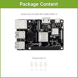 Powerful and Affordable RISC-V SBC: The VisionFive 2 Lite is a cost-effective single-board computer powered by the StarFive JH-7110S quad-core processor. Its high-performance architecture makes it ideal for educational purposes, AIoT, smart home, and IIoT applications, offering exceptional image and video processing capabilities. Memory and Storage Flexibility: Available in 2GB, 4GB, and 8GB LPDDR4 RAM configurations, with the 8GB version offering optional onboard 64GB eMMC storage, providing scalable memory options to meet a variety of project needs, from basic development to more complex applications. Compact and Easy to Integrate: With its compact size (56 × 85 mm), the VisionFive 2 Lite fits seamlessly into small spaces, making it ideal for embedded systems and projects where space is at a premium. Advanced Connectivity and Expansion: Featuring integrated Wi-Fi 6 and BT5.4 dual-band wireless, as well as an M.2 M-Key slot for SATA3 or PCIe 2.0 NVMe SSDs, it ensures fast data transfer, high-speed storage expansion, and reliable wireless communication, all in one board. Rich I/O for Versatile Applications: The board includes a wide range of I/O interfaces such as MIPI DSI, MIPI CSI, USB 3.0, USB 2.0, HDMI 2.0, and Gigabit Ethernet, providing extensive options for connecting and controlling external devices, enabling easy integration with various peripherals for your projects.