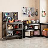 - Heavy Duty Workbench with Pegboard, 3000LBS Capacity Adjustable Shelving Work Table, Mobile Workstation with Lockable Wheels for Garage Warehouse Workshop Office, 47.2"H x 33.5"W x 18"D, Black
