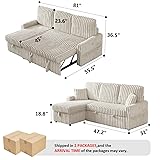 【3-in-1 Convertible Sofa Bed】This modern convertible sofa bed easily transforms from an L-shaped couch into a lounger or a pull out couch bed for guests. Ideal for apartments, small spaces, and living rooms, this sectional sofa combines comfort, style, and versatility for every home setup 【Multifunctional Sleeper Sofa】More than a simple sofa bed couch, this sleeper sofa features a built-in USB and Type-C charging port, convenient side pockets for remotes or phones, and a center cushion with hidden dual cup holders. Perfect for movie nights or relaxing with friends 【Sectional Sofa with Hidden Storage】The reversible chaise can be installed on either side of your sectional couches for living room, giving you layout flexibility. Beneath the chaise with a storage space helps keep blankets, pillows, and daily essentials organized and out of sight 【Plush Corduroy Comfort & Durability】This sleeper sofa bed is upholstered in premium plush corduroy fabric for cloud-like softness and breathable comfort. The durable texture adds a touch of luxury while resisting wear, fading, and wrinkles—perfect for families, pets, and everyday use 【Sturdy Frame & Easy Assembly】Crafted with a solid wood and metal structure, this sofa bed provides strong support and a weight capacity of up to 1100 lbs. The couch bed arrives with clear instructions for quick, simple assembly—bringing comfort and convenience straight to your living space