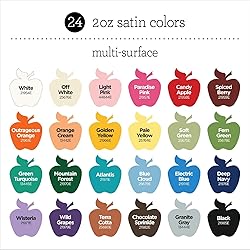 COLORFUL SATIN ACRYLIC PAINT SET - This acrylic paint set features a collection of 24 bottles, each containing 2 oz of vibrant acrylic craft paint in a satin finish. VERSATILE BRUSHES – Included in this kit are 12 Apple Barrel brushes: ¾” Flat, #8 Flat, #12 Flat, #8 Round, #3 Round, ½” Angle, #6 Angle, #12 Round, #6 Round, #2 Flat, #1 Liner, and #6 Flat BRILLIANT COVERAGE - Use this acrylic paint kit on a variety of surfaces, including wood, paper, canvas, Styrofoam, paper mâché, and so much more. EASY CLEAN UP - Apple Barrel Acrylic Paint is a breeze to clean up, making this kit a must-have for your art supplies. Simply clean up while wet with soap and water. FORMULA - Apple Barrel Multi-Surface is a water-based formula. Expand your art supplies with this fun brand!