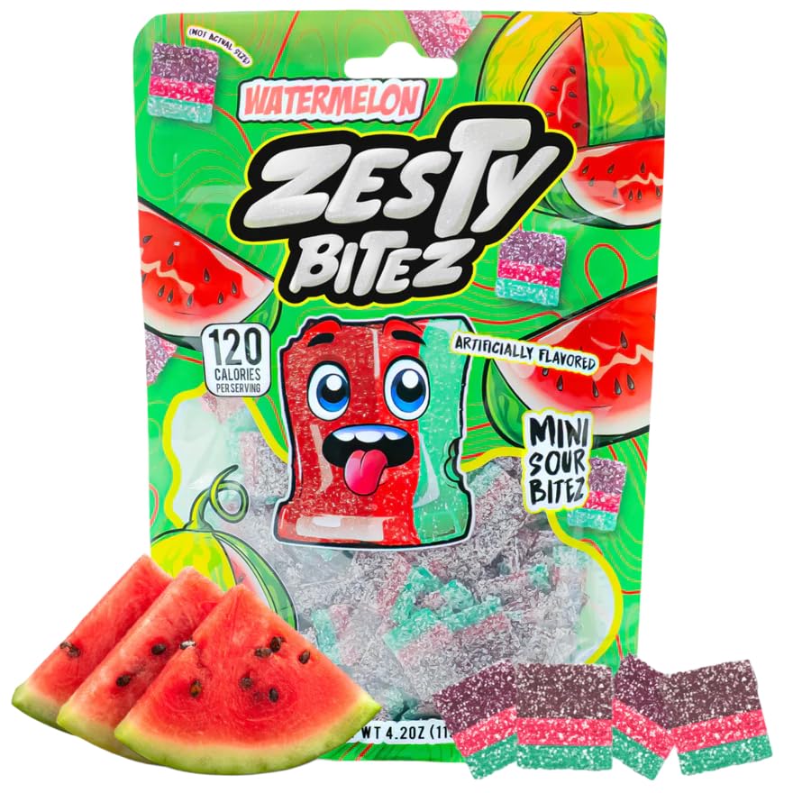• Zesty Bitez brings bold, pucker-worthy flavor in convenient bite-sized strips made for fans who crave intense, tangy treats. Each variety pack includes Blue Raspberry, Strawberry, Tropical Rainbow, and Berry coated in a bright sugar layer for the perfect sweet-and-tart balance. No long belts. No sticky ropes. Just easy-to-enjoy, chewy pieces packed with fruity flavor and vibrant color in every bite. Each thin strip delivers a soft gummy texture with a satisfying tangy finish, making them perfect for sharing at parties, filling candy bowls, packing for road trips, or enjoying during movie nights. Created by Brenten Szekely (Finatic) and Paul Cuffaro, Zesty Bitez is crafted for bold flavor lovers who want playful design and a consistently chewy bite. This bulk assortment includes four resealable bags with over 150 pieces per bag ideal for stocking up, gifting, or satisfying everyday cravings. If you love gummy strips, fruity tangy treats, or colorful party assortments, this variety pack delivers the classic puckering experience candy fans search for—without the mess or hassle of traditional belts.