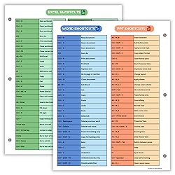Excel Shortcuts on the Front — Features a clear layout of commonly used Excel shortcuts organized by function for quick referencing during schoolwork, office tasks, or computer classes. PowerPoint & Word Shortcuts on the Back — The reverse side includes essential shortcuts for both PowerPoint and Word, offering a full productivity guide on one laminated sheet. Gloss-Laminated for Everyday Durability — Laminated finish helps the page stay in good condition inside binders and folders, even with frequent flipping and study use. Sized for All Standard 3-Ring Binders — Pre-punched and printed on 8.5x11 stock so it fits easily into binders used for class notes, office organization, or computer skills study. Organized, Easy-to-Read Layout — Designed with clean sections so students and professionals can quickly find shortcuts while working on assignments or projects.