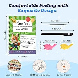 【Improve Cursive Handwriting Skills】This grooved cursive practice book provides structured exercises for cursive letters, numbers, words, and full sentences. Enriched with fun riddles, inspirational quotes, short poems, and cursive storytime passages, it keeps kids engaged while building a strong foundation in cursive handwriting. 【Learning Cursive for Kids – Tactile & Guided】Designed with deep grooves and textured pages, this cursive handwriting workbook for teens guides every stroke to help children form letters correctly and develop muscle memory. The disappearing ink pen allows stress-free practice—mistakes fade away naturally, boosting confidence and motivation. 【Step-by-Step Cursive Handwriting Practice for Kids 8-10】This magic ink cursive handwriting book progresses from individual cursive letter tracing to word practice, sentence writing, and creative expression. Interactive activities like riddles and storytelling make learning cursive handwriting fun, engaging, and never boring. 【Reusable Cursive Handwriting Workbook】Made with thick, durable pages and a magic ink pen, the writing fully disappears in about 30 minutes, allowing kids to reuse this magic groove cursive handwriting practice workbook again and again. Perfect for daily handwriting practice at home, in classrooms, or for homeschooling—with no paper waste. 【Perfect Educational Gift for Kids】Ideal for parents, teachers, and homeschool families, this grooved cursive handwriting book helps improve penmanship, focus, and fine motor skills. A thoughtful educational gift that transforms scribbles into confident, beautiful cursive writing.