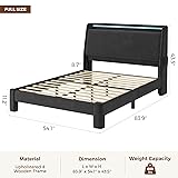 CORDUROY WINGBACK HEADBOARD: This full bed frame features a 43.5-Inch tall corduroy upholstered headboard with vertical tufting and a wingback design. Its 105°golden angle is ergonomically engineered to naturally align with your spine, offering the perfect support for your head and shoulders, making bedtime reading or movie-watching relaxing CHARGING STATION & HIDDEN STORAGE HEADBOARD: Say goodbye to tangled charging cords by the bed! Built-in sockets include 2 AC outlets, 1 USB port, and 1 Type-C port to meet all your charging needs. The headboard features a 6.9''D x 13.2''H hidden storage compartment with one shelf that flips open for storing personal belongings. Convenient side pockets on the bed wings offer within-reach storage for books and tablets, making bedtime reading and video viewing effortlessly comfortable STURDY ROUND LEGS DESIGN: This full-size upholstered bed frame creates a cloud-like sleeping experience by rounded edges and plush headboard and footboard, preventing bumps and scrapes. Supported by sturdy round legs and a robust metal frame, it holds up to 800 lbs with rock-solid stability, offering reliable protection for the whole family—perfect for both children and parents SMART RGB LIGHTING SYNCS WITH MUSIC: This full-size bed frame features a built-in RGB LED headboard with over 16 million colors, over 20+ light effects, and dynamic modes controlled by app or remote. Transform your bedroom with vibrant lighting that syncs to music, creating the perfect ambiance for relaxation, reading, or entertainment. Over 100,000 hours of lighting lifespan ensures lasting companionship for every comfortable night EASY TO PUT TOGETHER: Each bed frame comes with clear and detailed instructions and installation tools, and every screw and accessory is labeled with corresponding numbers, making it remarkably easy to assemble. This full bed frame is especially suitable for DIY enthusiasts, allowing for a hassle-free installation process. If you have any questions before or after purchase, our dedicated support team is available to assist you and will respond within 24 hours.