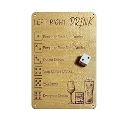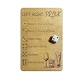 - TRANSFORM YOUR GAME NIGHTS Transform your game nights with this stylish 8x12 inch steel drinking game sign! The "Left Right Drink" dice game sign features elegant engraved dice symbols and drinking glass artwork, making it a perfect addition to your bar, game room, or party space. Made from durable gauge steel with a weather-resistant finish, this sign comes pre-drilled for easy mounting. SIMPLE & FUN DRINKING GAME RULES The rules are simple and fun — roll the dice to determine who drinks based on six different outcomes: person to your left drinks, person to your right drinks, oldest drinks, your choice drinks, you drink, or everyone drinks! The brushed gold finish adds a touch of sophistication while maintaining durability for long-lasting entertainment. PERFECT FOR PARTIES & DECOR Perfect for birthdays, game nights, parties, or as a unique wall decoration that doubles as an interactive party game. The sign's generous size ensures clear visibility across the room, while its premium construction guarantees it will be the center of attention at your next gathering.