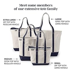 Durable & Stylish: A timeless classic this tote bag is perfect for carrying books gym clothes picnic supplies and almost anything else. 100% cotton canvas. Spot clean air dry. Well Constructed: Wide felled seams on this spacious canvas tote bag allow it to stand upright keeping the contents safely inside. It can even hold up to 500 pounds. We've tested it so load it up! Splash Safe: The water-repellent base and trim on our canvas tote protects your stuff if it's set down by a pool or a puddle. It also has several pockets for storing your odds and ends. Handy: This canvas tote can take the place of a purse or even a duffel. Internal and external pockets make it easy to stay organized and it can be worn comfortably over your shoulder. Pick your perfect size: Small 13.5"W x 5.5"D x 9"H; Medium 17"W x 6"D x 13.5"H; Large 22.5"W x 9.5"D x 17"H; Extra Large 26"W x 10.25"D x 17.5"H