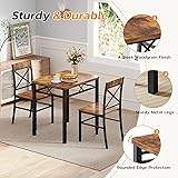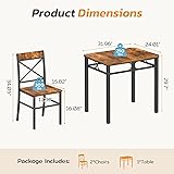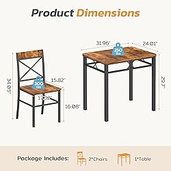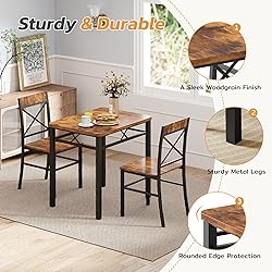 【Table and Chairs Set of 2】This kitchen table set includes 1 sturdy dining table and 2 matching chairs. Our dining room table set for 6 is ideal for family meals, casual dinners with friends, or everyday use. It provides a fantastic place for you and your friends to gather for drinks and more. 【X-shaped Backrest Design】Our dining table edge is curved to prevent injuries. Our X-shaped backrest chair design not only offers a modern and artistic look but also provides extra back support, enhancing comfort for extended sitting. 【Sturdy & Durable】The table and chair set features a sturdy design with durable wood and strong steel frames, ensuring stability and long-lasting use. The kitchen table can hold up to 220 lbs, and the stools can hold up to 300 lbs. 【Application】The wood grain and clean lines blend effortlessly with modern interiors. Our small dining room table set for 2 is suitable for home and kitchen and takes up very little space. The dining table is ideal for everyday use, including breakfast, dinner, and gatherings. 【Easy Installation & Clean】Our kitchen table chairs set include all the necessary parts, hardware, and step-by-step instructions for quick and easy setup. The smooth tabletop is easy to clean, and durable enough for everyday use.