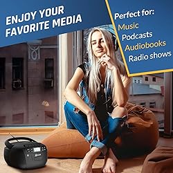 VERSATILE MUSIC EXPERIENCE: Enjoy a stylish CD Cassette Player combo with 3W dual speakers for crisp, stereo sound. Play your favorite CDs and MP3/WMA files with ease, and customize your listening with song programming for CD and USB modes. BLUETOOTH + AUX: Not just a CD player, but a multi-functional music powerhouse. With Bluetooth 5.1, connect to your devices for seamless wireless streaming. Prefer a wired connection? Use the auxiliary input for direct playback from your phone. You can also plug in a USB drive to play your favorite tracks or audiobooks. The handy remote control lets you operate the cd player boombox from up to 20 feet away. CASSETTE PLAYER & AM/FM RADIO: Enjoy classic sounds with the built-in cassette tape deck, complete with recording functionality. Switch to AM/FM radio to catch your favorite talk shows, news, or sports broadcasts. Extend the antenna for enhanced reception and use the LCD screen for easy tuning. This radio cd player combo for home ensures you're never short of entertainment options. FLEXIBLE POWER OPTIONS: Power up your boombox CD player effortlessly with the included AC cable for indoor use, or switch to 6 C-size batteries for portable convenience during outdoor activities. A portable cassette player with a built-in handle, making it easy to take on the go. The earphone jack allows for a personalized listening experience anytime, anywhere. WORRY-FREE SUPPORT: This classic boombox with cd and cassette player makes a thoughtful gift for family and friends of all ages. With our 5-year coverage, and 24/7 customer support, you can purchase with confidence knowing we are committed to your satisfaction. Plus, the integrated sleep timer ensures a convenient listening experience.