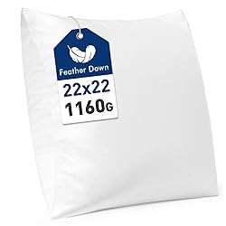 Feather and Down Filling: Filled by 1160 g/2.56 lb premium feather down (20% more than other) and our innovative double-layered cotton fabric can effectively prevent feathers overflowing Soft and Comfort: Adequate filling brings comfort and soft experience while not easily deforming, and 2-4cm feather down has less smell after multiple wash and clean process Keep the Chop Shape: Our pillow insert is designed to hold its shapebeautifully, making it easy to create and maintain a chop look for lasting comfort Multifunctional: Perfect for couch, sofa, bed, chair, living room and bedroom, this feather down pillow insert adds cozy comfort while easily creating a stylish chop look, giving your decorative covers a more elegant shape that enhances any space. Package: Each product contain 1 piece of 22x22 inch pillow insert, it's packed by vaccum. So please gently pat the pillow insert after opening the compressed packaging to make it fluffy