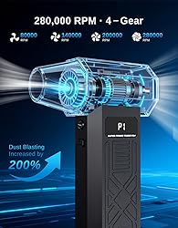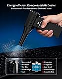 [The Last Canned Air You'll Ever Buy] Stop wasting money on endless disposable air cans. This electric air duster is a one-time investment that replaces thousands of cans of compressed air. Eco-friendly, non-toxic, and cost-effective—designed for users who care about both their wallet and the planet [Unrivaled 280,000 RPM Cleaning Power] Equipped with a state-of-the-art brushless motor spinning at 280,000 RPM, it delivers a continuous high-pressure blast of air. Unlike traditional cans that lose pressure and freeze up, our air blower provides steady, hurricane-force wind to blast away stubborn dust from PC towers and server racks instantly [Precision Cleaning with 5 Versatile Nozzles] Includes 5 specialized nozzle attachments to handle every nook and cranny. From delicate camera lenses and mechanical keyboards to car air vents and window tracks, this compressed air duster offers a custom cleaning solution. It’s not just a duster; it’s a professional-grade electronics maintenance kit [4-Gear Adjustable & Intelligent Battery] Features 4 airflow modes to suit different tasks: Low for delicate fans, Medium for car interiors, and High for deep PC cleaning. Powered by a high-capacity high-capacity battery with USB-C fast charging, it ensures you have the power you need for a full cleaning session without the hassle of cords [Safe for Sensitive Electronics] Traditional "canned air" can spray liquid refrigerant, causing static or short circuits. Our electric air duster is 100% moisture-free and static-free,making it the safest choice for high-end GPUs, motherboards, and sensitive laboratory equipment. Clean with total peace of mind