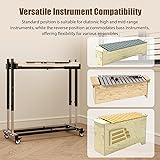 Broad Brand Compatibility: Designed to fit most major brands fit for Orff instruments, ensuring seamless integration with your existing equipment. Enhanced Mobility: Casters wheels allow smooth and easy movement around the room, cross thresholds and elevator entries pretty well, making it ideal for dynamic teaching or performance environments. Effortless Height Adjustment: Easily switch between standard and reverse positions with a simple rotate screw mechanism, ensuring quick adaptability for different musical setups. Assemble and adjust the stand without any tools, saving time and eliminating hassle. Versatile Instrument Compatibility: The standard position is optimized for diatonic soprano and alto instruments, while the reverse position accommodates bass instruments, offering flexibility for various ensembles. Durable Structure: Constructed from high-quality steel, it is durable and can withstand high-intensity work. The black coating is rust-proof and corrosion-resistant, ensuring a long service life