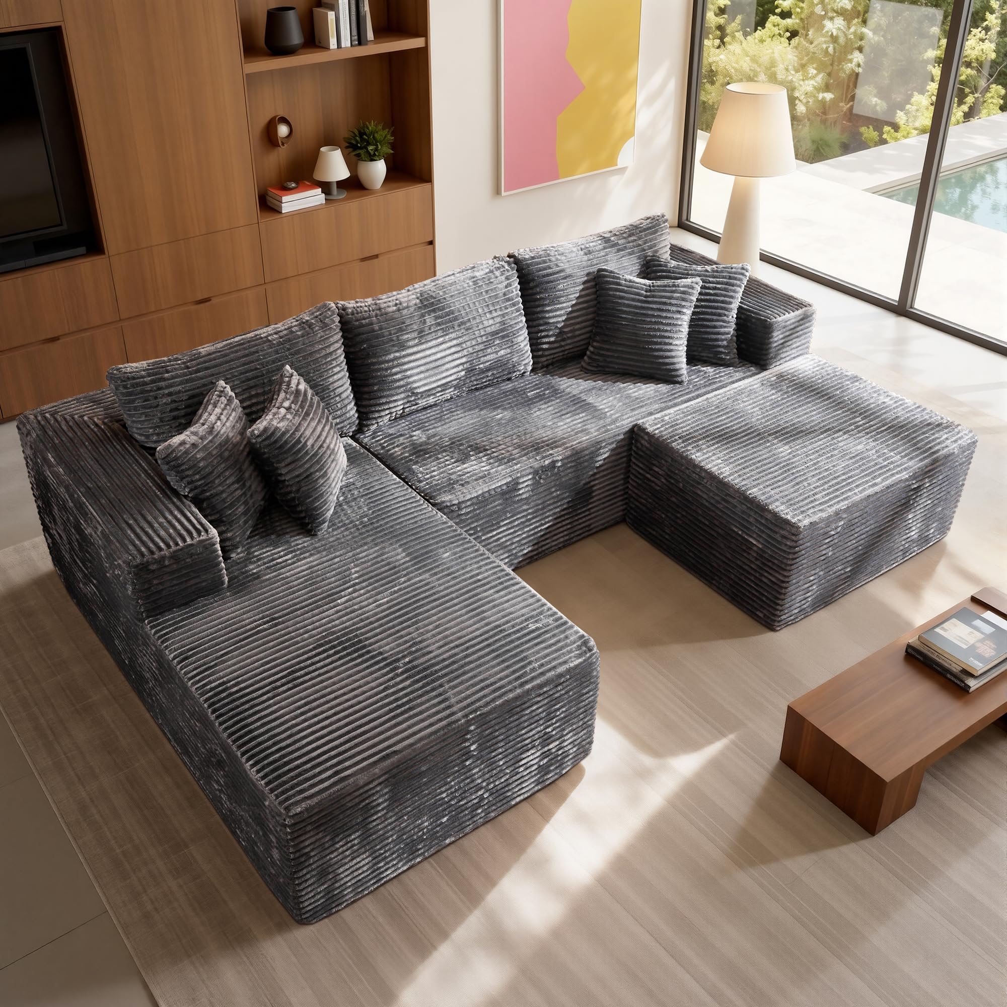 Boneless Comfort Sofa: Experience pure relaxation with OTHILOA’s modular cloud sofa, designed for all-day comfort. The deep, plush seats, wide armrests and large ottoman create a soothing retreat, while three soft back cushions and two ergonomic lumbar pillows support your posture as you lounge, read, or unwind with family. Premium All-Foam Resilience: Constructed with high-density foam, this sectional sofa offers the perfect balance of softness and support. The boneless, all-foam design maintains its shape and elasticity over time—no metal frames, no creaking noise, just smooth, stable comfort that’s ideal for kids, elders, and pets. Luxurious Plush Fabric Upholstery: Wrapped in premium plush fabric, this couch feels as soft as a cloud and as cozy as your favorite blanket. The skin-friendly texture delivers warmth and comfort year-round, while being resistant to fading, pilling, and everyday wear. Its durable, easy-to-clean surface makes maintenance simple and worry-free. Convertible Modular Sectional: Adapt it to your lifestyle—the flexible modular design allows you to create an L-shaped layout, a spacious lounging sofa, or a convertible sofa bed for guests. The deep and wide seats welcome tall individuals and families alike, offering generous room for stretching, curling up, or cross-legged sitting. No-Assembly Boneless Couch: Forget complicated installations. Simply unbox, cut open the vacuum-sealed bag, and let the sofa naturally expand within hours (fully fluffed in 3–7 days). Its boneless all-foam structure ensures quiet, creak-free use, bringing you effortless comfort right out of the box.