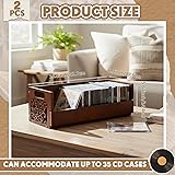 • Features: Versatile Use: Beyond storing CDs, DVDs, cassette tapes, and VHS tapes, these organizers also serve as a practical solution for arranging stationery, medications, booklets, and other office essentials to keep workspaces tidy and efficient. Additionally, it doubles as a display rack for books, magazines, and artworks, blending storage functionality with home decor. Decorative Gifts: The wooden storage rack complements any home or office decor seamlessly, adding an aesthetic touch. It makes a suitable gift for music lovers, collectors, or anyone who values organization. Specifications: Material: wood Color: brown Size: 17.1 x 6.9 x 5.67 inches/ 43.4 x 17.5 x 14.4 cm Package includes: 2 x Wooden CD storage boxes Notes: Manual measurement, please allow slight errors on size. The color may exist a slight difference due to different screen displays