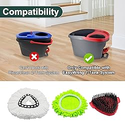 - Mop Head Replacement for O cedar, Spin Mop Replacement Head for Ocedar Easywring 1 Tank System, Mop Heads Includeds 4 Mop Replacement Heads , 1 Spin Mop Scrub Brush & 1 Mop Head Base【Model Fit Tip】: Mop head replacement for O cedar 1 Tank system, mop replace heads includeds 4 Mop Replacement Heads , 1 Spin Mop Scrub Brush & 1 Mop Head Base.【No Place for Stains to Hide】 As a high-performance spin mop replacement head, it effortlessly tackles tough stains and daily grime, making deep cleaning a breeze. The ultra-absorbent microfiber is uniquely designed to lift and lock away dirt, leaving your floors spotless. Plus, this mop head replacement is safe and effective on all hardwood, tile, marble, and sensitive flooring.【Easy Snap-On Installation in Seconds】 Engineered as the perfect replacement mop heads for O-Cedar spin mops, it features a precision snap-on buckle. Simply align and press—you'll feel it lock securely into place without any tools or complicated steps. This mop head replacement delivers a hassle-free setup, getting you back to cleaning in no time.【Super Absorbent & Deep Cleaning Power】 Crafted from 100% high-quality microfiber, this mop head replacement is exceptionally absorbent for both wet and dry use. The dense fibers actively seek out, trap, and lift stubborn grime, dirt, and oily stains from your floors, leaving a spotless shine. Designed for durability, it stands up to repeated washing, making it a long-lasting mop refill choice.【Machine Washable and Reusable】: The mop heads replacements are machine washable and reusable. The set of three easy wring mops refills is durable enough to be easily paired for replacement needs within six months and for ocedar scrubber mop head can greatly improve the efficiency of cleaning