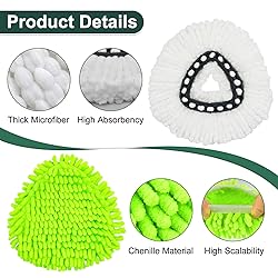 【Model Fit Tip】: Mop head replacement for O cedar 1 Tank system, mop replace heads includeds 4 Mop Replacement Heads , 1 Spin Mop Scrub Brush & 1 Mop Head Base. 【No Place for Stains to Hide】 As a high-performance spin mop replacement head, it effortlessly tackles tough stains and daily grime, making deep cleaning a breeze. The ultra-absorbent microfiber is uniquely designed to lift and lock away dirt, leaving your floors spotless. Plus, this mop head replacement is safe and effective on all hardwood, tile, marble, and sensitive flooring. 【Easy Snap-On Installation in Seconds】 Engineered as the perfect replacement mop heads for O-Cedar spin mops, it features a precision snap-on buckle. Simply align and press—you'll feel it lock securely into place without any tools or complicated steps. This mop head replacement delivers a hassle-free setup, getting you back to cleaning in no time. 【Super Absorbent & Deep Cleaning Power】 Crafted from 100% high-quality microfiber, this mop head replacement is exceptionally absorbent for both wet and dry use. The dense fibers actively seek out, trap, and lift stubborn grime, dirt, and oily stains from your floors, leaving a spotless shine. Designed for durability, it stands up to repeated washing, making it a long-lasting mop refill choice. 【Machine Washable and Reusable】: The mop heads replacements are machine washable and reusable. The set of three easy wring mops refills is durable enough to be easily paired for replacement needs within six months and for ocedar scrubber mop head can greatly improve the efficiency of cleaning