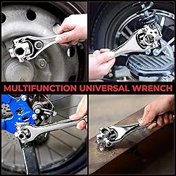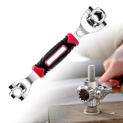 🛠️【52-in-1 Versatile Socket Solution】 The Saker universal wrench replaces an entire set of individual wrenches, working with spline bolts, 6-point, 12-point, torx, square bolts, and even damaged bolts. With clear numeric etchings showing corresponding sizes (8mm/5/16", 10mm/3/8", 11mm/7/16", 13mm/1/2"), this all-in-one tool eliminates the need for multiple separate wrenches. Perfect for quick repairs around the house when you don't want to dig through a heavy toolbox. 🛠️【360° Rotating Head for Tight Spaces】 Experience unparalleled accessibility with the Saker socket wrench's 360-degree rotating head that works at multiple angles, including hard-to-reach 45-degree positions. The innovative design allows you to tackle bolts in confined spaces where traditional wrenches can't reach, making complex jobs surprisingly simple. Ideal for bicycle repairs and automotive work where space is limited and maneuverability is crucial. 🛠️【Professional Grade Chrome Vanadium Steel】 Crafted from the same heavy-duty chromium vanadium alloy steel used in tank tracks, the Saker universal socket wrench features mirror chrome rust-proof finishing and overall polishing. The 450g weight provides substantial heft for tough jobs while maintaining comfortable handling during extended use. Built to withstand daily professional use while resisting wear and corrosion year after year. 🛠️【Ergonomic Non-Slip Rubber Handle】 The Saker combination socket wrench features an ergonomically designed rubber handle that ensures a secure, comfortable grip even with oily or wet hands. The 9.8-inch length provides optimal leverage for stubborn bolts while reducing hand fatigue and increasing torque application efficiency. Reduces hand strain during prolonged repair sessions, from automotive work to furniture assembly. 🛠️【Multi-Scenario Application Ready】 From household maintenance to professional repairs, the Saker dog bone wrench handles it all. Perfect for automotive spark plugs, bicycle adjustments, furniture assembly, plumbing fixes, and emergency repairs. Its compact design makes it an essential addition to any home toolbox, car trunk, or workshop. Keep one in your garage for projects and another in your car for roadside emergencies.