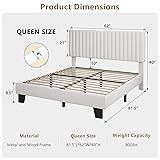 iPormis Queen Size Bed Frame, Upholstered Platform Bed with Vertical Velvet Headboard, Wide Bed Legs and Strong Wood Slats Support, No Box Spring Needed, Easy Assembly, Noise Free, White