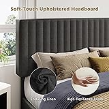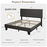iPormis Queen Size Bed Frame, Upholstered Platform Bed with Vertical Linen Headboard, Wide Bed Legs and Strong Wood Slats Support, No Box Spring Needed, Easy Assembly, Noise Free, Dark Grey