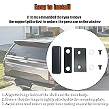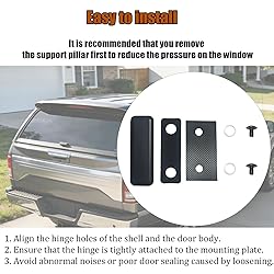 - 710001 Hinge Outer Plate Repair Kit Compatible with After 1973 Snugtop Camper Shell , Nut Plates Hinge bushings Replace,Truck Cap Glass Rear Doors Accessories Compatibility: 710001 Nut Plates Hinge Repair Kit is compatible with After 1973 Snugtop Truck Cap Glass Rear Doors Product features 710001 Nut Plates Hinge Kit offer easy and secure functionality, allowing you to open and close your camper shell with ease. Whether you're accessing your gear or setting up camp, these hinge plates will make your life easier. The kit includes: A set of 710001 Nut Plates Hinge Repair Kit includes 1 Nut Plate, 1 Inner Gasket and 1 Outer Gasket. 2 Nylon Spacers and 2 Black Screws. 7 Pieces Total Good quality: The surface of the 710001 Nut Plates Hinge Kit has undergone black anti-rust treatment, which ensures a long service life and is not prone to damage Installation tips: It is recommended that you remove the support pillar first to reduce the pressure on the window. When installing the Nut Plates Hinge, align the hinge holes of the housing and the door body to ensure a tight fit between the hinge and the installation plate, avoiding abnormal noise or poor sealing of the door body due to loosening.