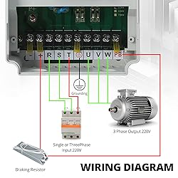 【Product Parameter】:This vfd drive: 1 or 3 phase input and 3 phase output; Input voltage: AC 220V(+/-15%) 1 or 3 phase, Output voltage: AC 220V three phase; Input frequency: 50/60 Hz; power: 2.2kw; horsepower: 3HP. 【Intelligent Control and Stable Communication】:The vfd 220v input 220v 3 phase output is equipped with a digital display panel and a detachable design (standard 7.9inch connection cable), supporting remote control and potentiometer speed adjustment. It has an internal RS485 communication port and a rich set of digital/analog control terminals, meeting diverse and complex control requirements, making device integration and automation upgrades simple and efficient. [Durable and Reliable]:The vfd variable frequency drive uses high-quality copper coils and a triple-proof paint circuit board (resistant to moisture, dust and corrosion), ensuring that the internal components can operate stably in harsh environments. [Efficient Heat Dissipation]:The vfd inverter adopts an innovative multi-grid and multi-hole three-dimensional heat dissipation structure, combined with high-efficiency silent fans, to form an efficient ventilation channel. Even when operating under full load for a long time, it can quickly dissipate heat, effectively extending the service life and reducing the failure rate. [Wide Applicability]:The variable Frequency Drive Control Inverter is specially designed for various three-phase motor speed control scenarios and is widely used in CNC machines, pumps, fans, compressors, conveyor belts, mixers, and other equipment. Caution: This model does not support external braking resistors; if the motor load is heavy, it is recommended to choose a model with a higher power.
