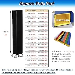 - This column-style collision pad serves as an elegant safety guard for garages, sports fields, and basements, effectively preventing collisions during jumps and runs. Specification:- Front Material: PVC Fabric- Inner Lining: Pearl Foam- Back Material: Oxford Cloth- Fits Square Pole Size: 2"x2" (5x5cm) - 12"x12" (30x30cm)- Height: 72inch / 6ft(183 cm)- Closure: Tool-Free Self-adhesive hook-and-loop fastener- Package Information :1 x Wrap-Around Pole Padding Features:- Provides protection for poles and hands.- Quick and easy installation and removal.- Suitable for both indoor and outdoor settings.- Safeguards car doors from impacts in garage spaces.- Enhances safety for players during competitive activities.- Made from all-weather, UV-resistant material for prolonged use.- Fits basketball hoops, goalposts, patio columns, and garage columns.- Offers multi-functional protection for various impact areas without deforming. Warm Reminder:- Please note that due to manual measurement, there might be an error of 0-3 cm. We appreciate your understanding.- Color discrepancies may occur due to different monitor settings; we appreciate your understanding.- We are committed to providing excellent service. If you have any questions, please feel free to contact us.