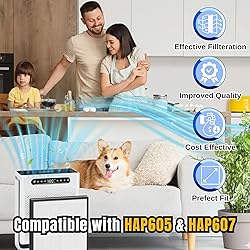 🌬️ HIGH-EFFICIENCY HAP605 / HAP607 REPLACEMENT FILTERS (3-PACK) – This value pack includes three premium replacement filters designed for Freaire air purifier, XenonLab air purifier, and ToLife air purifier filter replacement models. Ensures long-lasting clean air for homes, offices, and bedrooms. 🛡️ 3-LAYER PERFORMANCE FILTRATION – Each filter features a multi-layer design including a fine-particle capture layer, a dense filtration core, and an activated carbon layer. Helps reduce smoke, dust, pet dander, VOCs, odors, and airborne pollutants for cleaner, fresher air. 🔁 COMPATIBLE WITH MULTIPLE MODELS – Works with Freaire HAP605 filter replacement, HAP603 air purifier replacement filter, HAP607 air purifier replacement filter, VisionAir HAP606 filter, HAP608, HAP602, HAP600-TU, HAP002, Mooka HAP607 filter, and most equivalent units. Simple slide-in installation. 🌱 IMPROVED AIR QUALITY FOR EVERY ROOM – Perfect for homes with pets, allergies, or cooking odors. The activated carbon layer helps reduce unwanted smells, making these filters ideal for kitchens, living rooms, nurseries, and high-use spaces 💨 LONG-LASTING & COST-EFFECTIVE – Replace your Freaire air purifier filter or XenonLab air purifier filter every 4–6 months depending on usage and air quality. This economical 3-pack ensures you always have clean replacements ready for consistent purification performance.