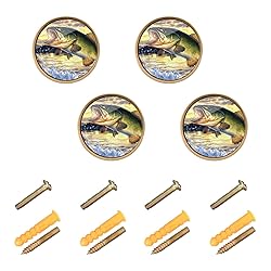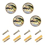 YMXFXP 4 Pack Trout Water Closeup Gold Cabinet Knobs, Cool Design Round Pulls Handle for Drawer Wall Dresser